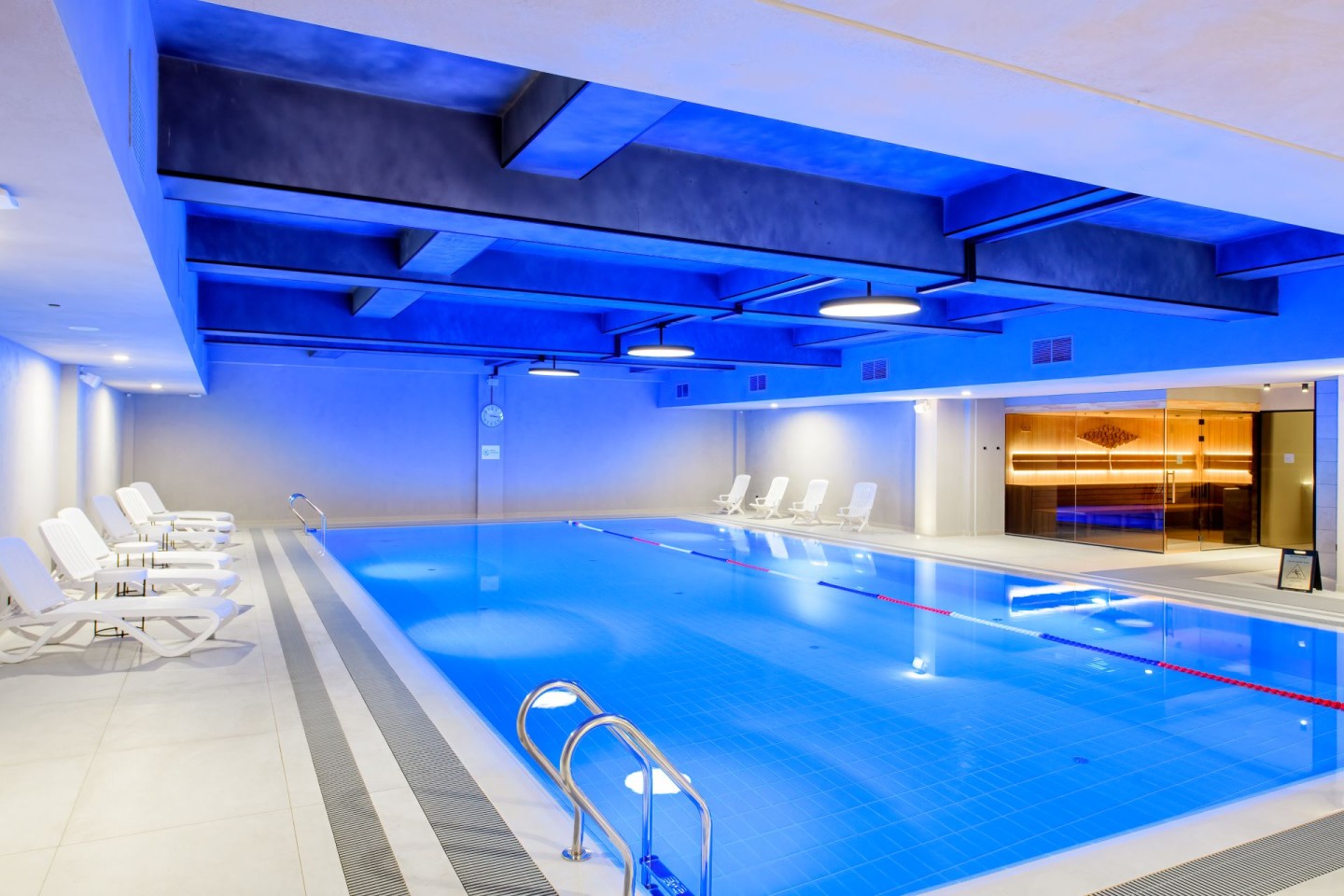 Центральным элементом нашего комплекса является 15-метровый бассейн с подсветкой. Подсветка создает магическую атмосферу, превращая плавание в настоящее удовольствие, независимо от времени суток. Вокруг бассейна расположены уютные зоны отдыха, где вы можете расслабиться, заказать освежающие напитки.